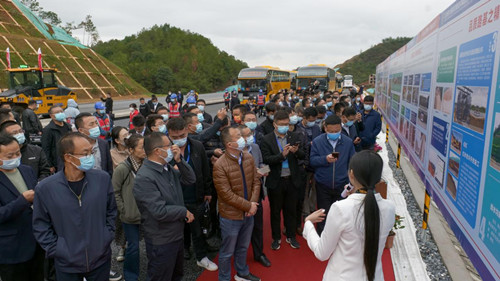21日下午,与会专家和代表们来到大广扩容项目施工现场,观摩了一体化安全培训体验中心、品质路基及智慧梁场、路面无人集群常态化施工、隧道全工序成套机械化施工及品质化桥梁。